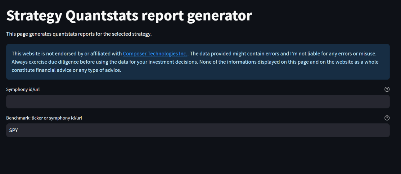 Feed it the URL’s of any strategy or 2 strategies you want to examine or compare. One as the strategy, one as the benchmark. I like to use Composers classic 60/40 as a benchmark, because I’m a conservative old man trapped in a younger mans body.
