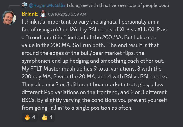 At least in this situation. Out of the 7 symphonies you effectively have 3. You can debate the “correct” number (meaning there isn’t one, but I digress.) Personally, I prefer 10 or more with 2-3 different bull vs bear market checks. The catch is, those 10 needs to be reasonably different from eachother. Not 4 copy/pastes of almost the same strategy.