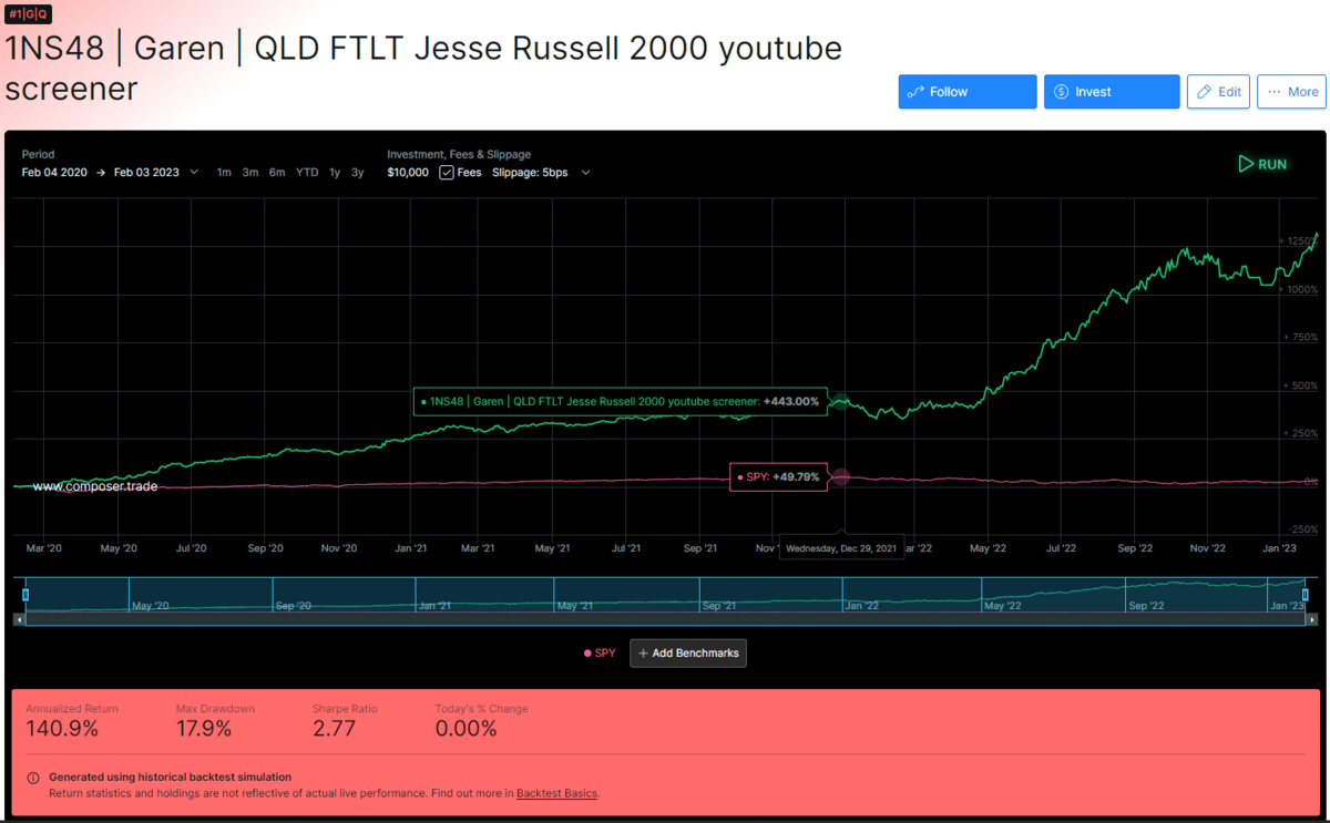 This particular strategy is based on the QLDFTLT framework I talked about in our Second newsletter. It features a core of a mean-reversion bull/bear switch with a multi-layered RSI based rotator of select Industrial sector stocks based on the screener settings covered in the call.