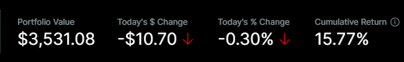 There isn’t really any logic branches to be analyzing here, its just rotating holdings, but we’ve cycled through most of the possible holdings, except $LULU, $EXPD, $ASML, and $SMLR. Dip buys of profitable companies working their magic!