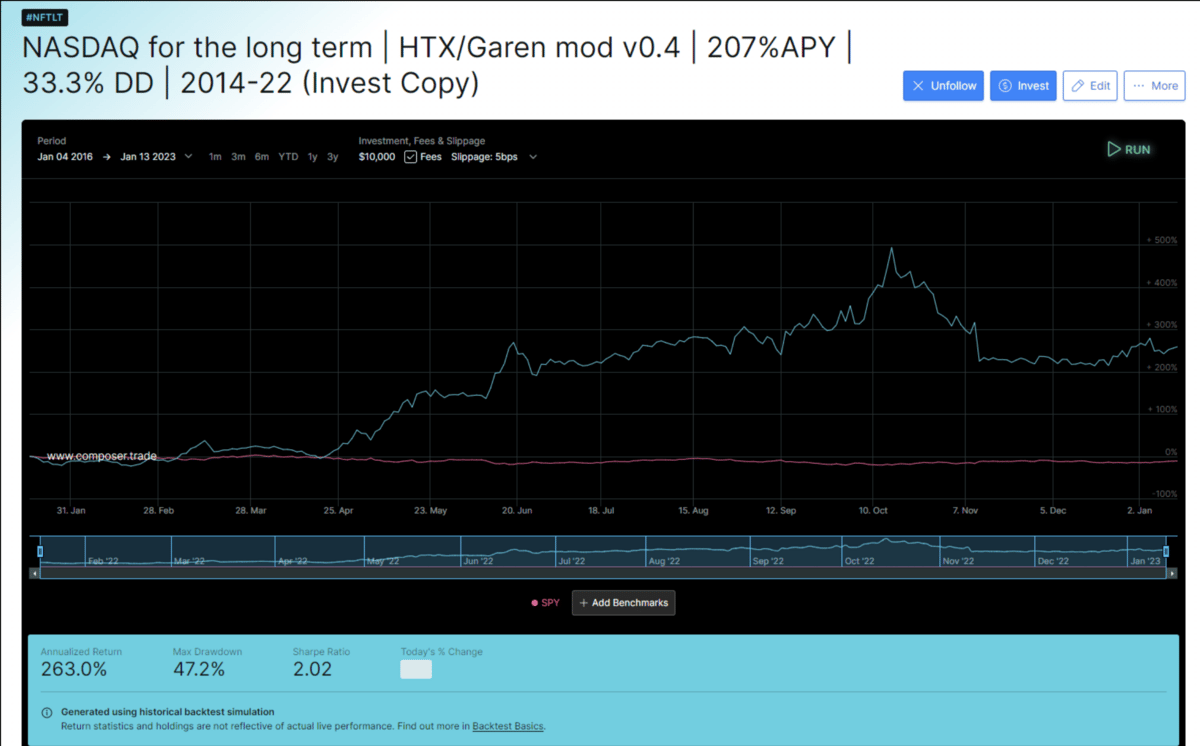 In this case, the pudding is a 58% return since 9/7/2022. QQQFTLT is one of the longest running, highest returning symphonies the community has come up with (that also has the most out of sample testing (fancy way of saying its been tested live).