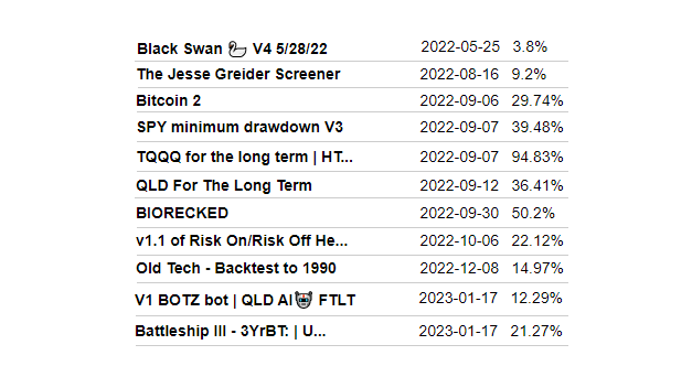 You may have noticed the âPremium Newsletterâ tag on the strategies. We combed through every strategies logic and removed any unnecessary K1 issuing ETFs, possibly dangerous logic branches and removed/switched any low volume tickers. We also boosted some branches volume with more tickers.